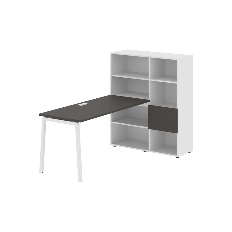 Каркасы стеллажей полностью из ЛДСП т.18 мм с кромками ПВХ т.2 и 0,45 мм, задняя стенка из ЛДСП. Комплектуется малой дверью в цвет столешницы и регулируемыми опорами h= 27 мм.