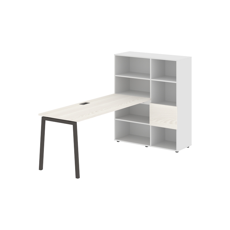 Каркасы стеллажей полностью из ЛДСП т.18 мм с кромками ПВХ т.2 и 0,45 мм, задняя стенка из ЛДСП. Комплектуется малой дверью в цвет столешницы и регулируемыми опорами h= 27 мм.