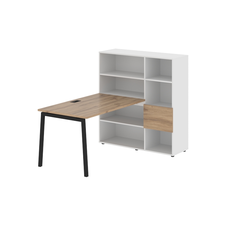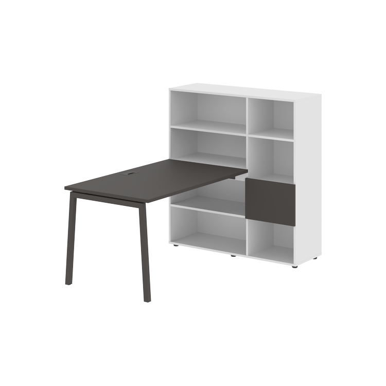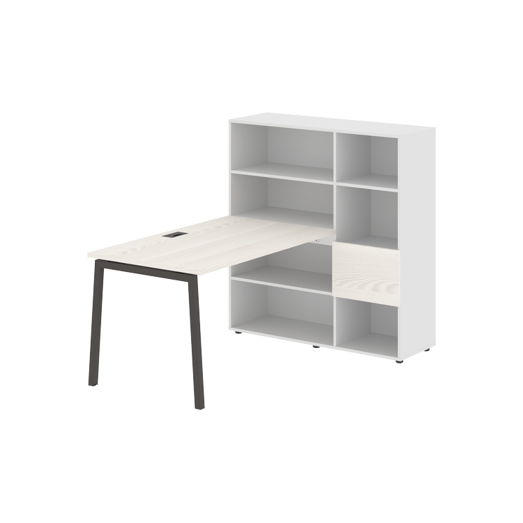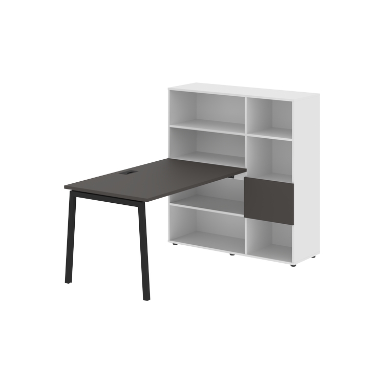 Столешница глубиной 800 мм, комплектуется регулируемой опорой L-образной формы из профиля трубы 40х40, комплектом телескопических траверс и двумя кронштейнами для крепления к стеллажу.