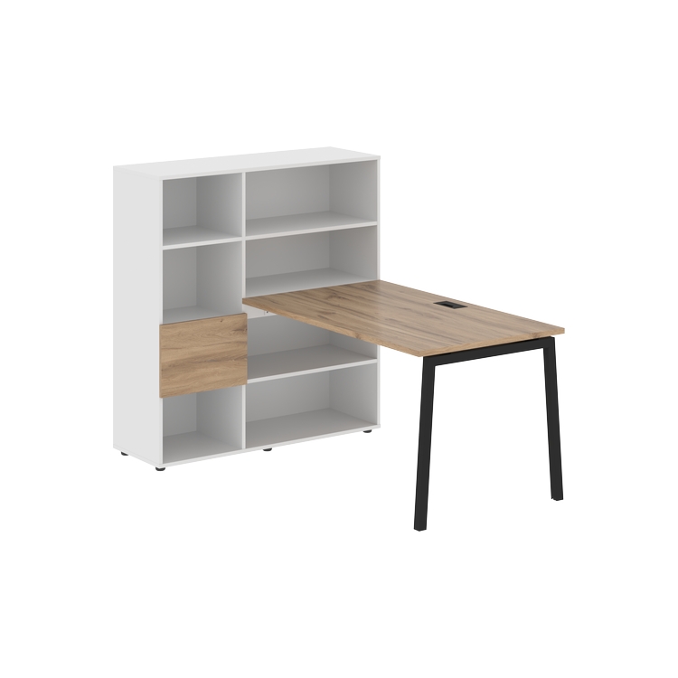 Столешница глубиной 800 мм, комплектуется регулируемой опорой L-образной формы из профиля трубы 40х40, комплектом телескопических траверс и двумя кронштейнами для крепления к стеллажу.