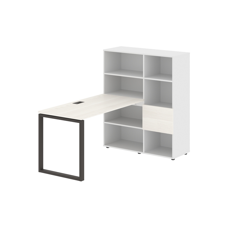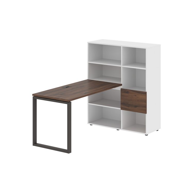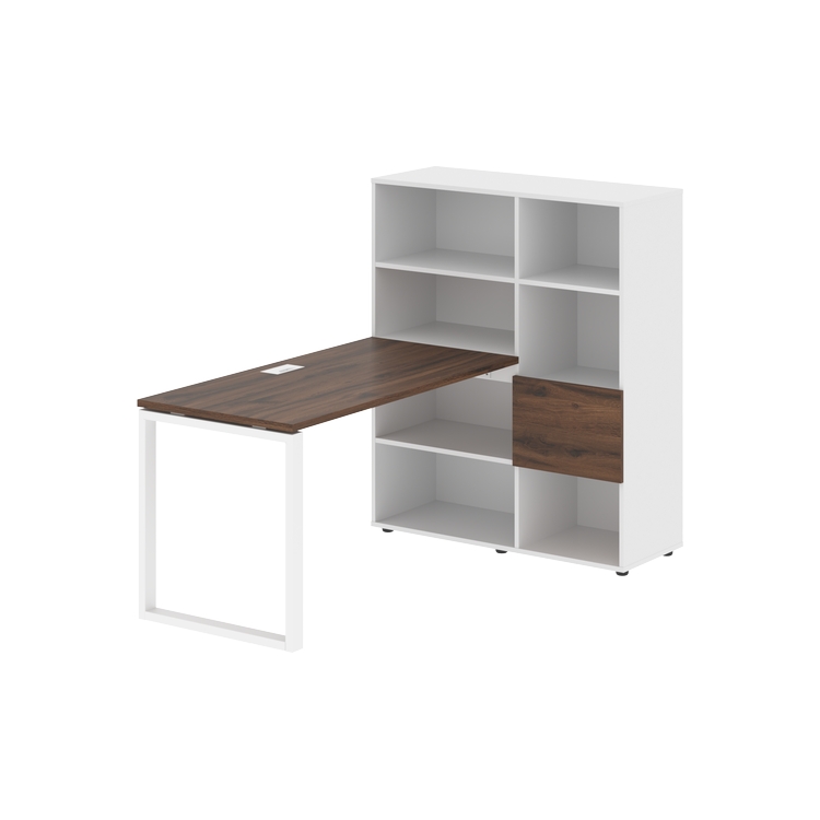 Каркасы стеллажей полностью из ЛДСП т.18 мм с кромками ПВХ т.2 и 0,45 мм, задняя стенка из ЛДСП. Комплектуется малой дверью в цвет столешницы и регулируемыми опорами h= 27 мм.
