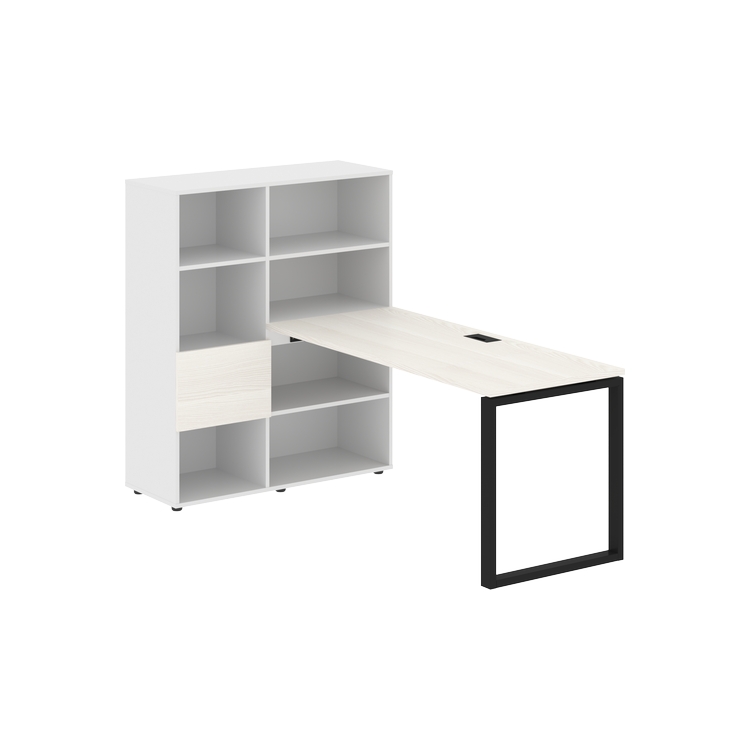 Каркасы стеллажей полностью из ЛДСП т.18 мм с кромками ПВХ т.2 и 0,45 мм, задняя стенка из ЛДСП. Комплектуется малой дверью в цвет столешницы и регулируемыми опорами h= 27 мм.