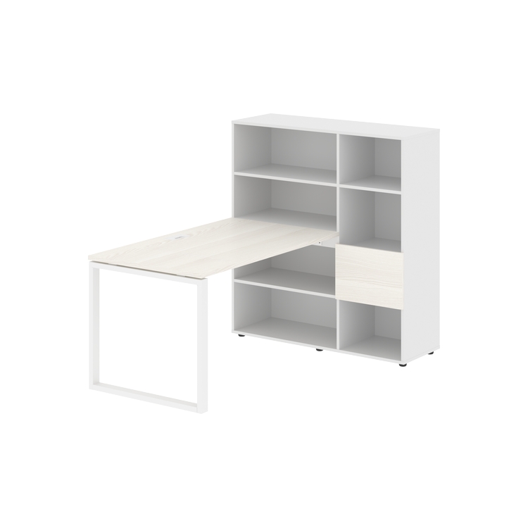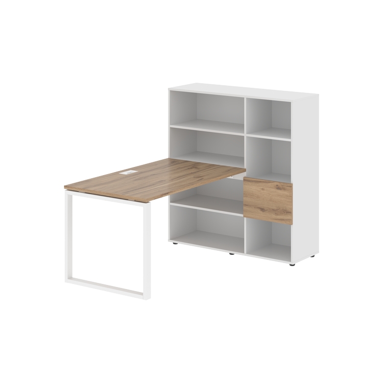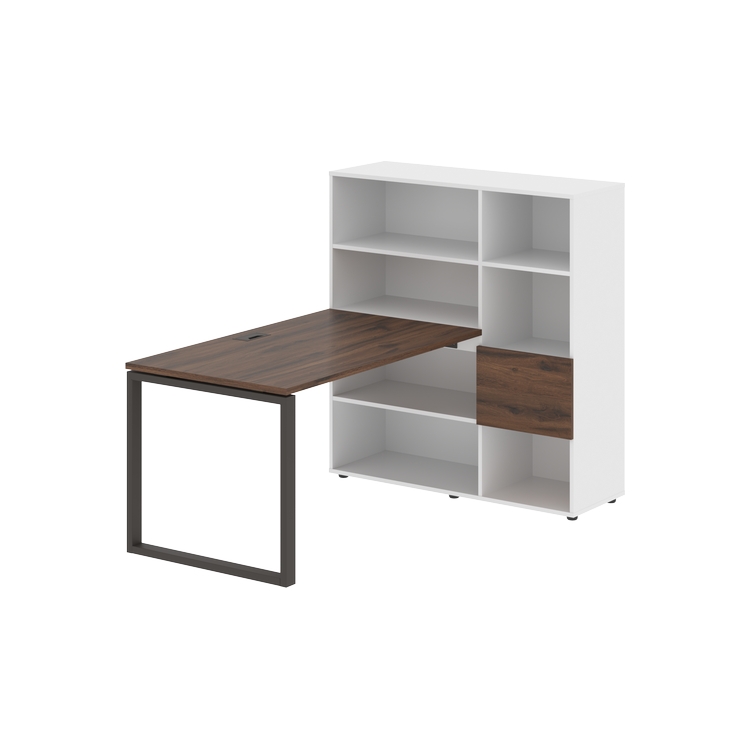 Каркасы стеллажей полностью из ЛДСП т.18 мм с кромками ПВХ т.2 и 0,45 мм, задняя стенка из ЛДСП. Комплектуется малой дверью в цвет столешницы и регулируемыми опорами h= 27 мм.