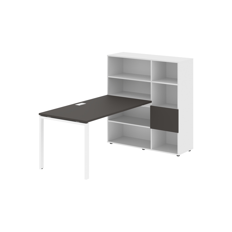 Столешница глубиной 800 мм, комплектуется регулируемой опорой П-образной формы из профиля трубы 60х30, комплектом телескопических траверс и двумя кронштейнами для крепления к стеллажу.