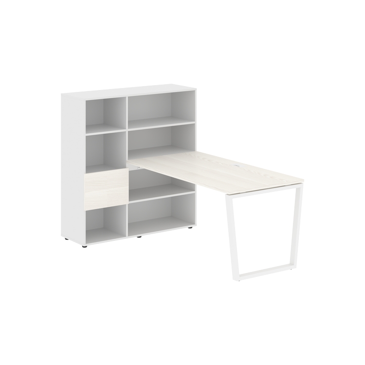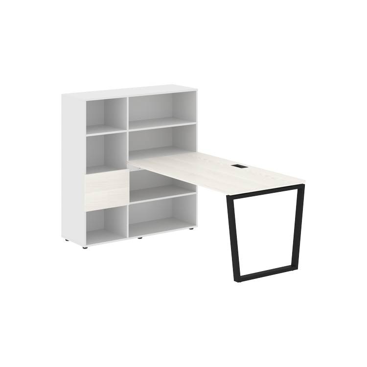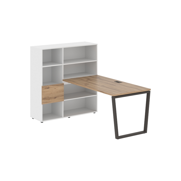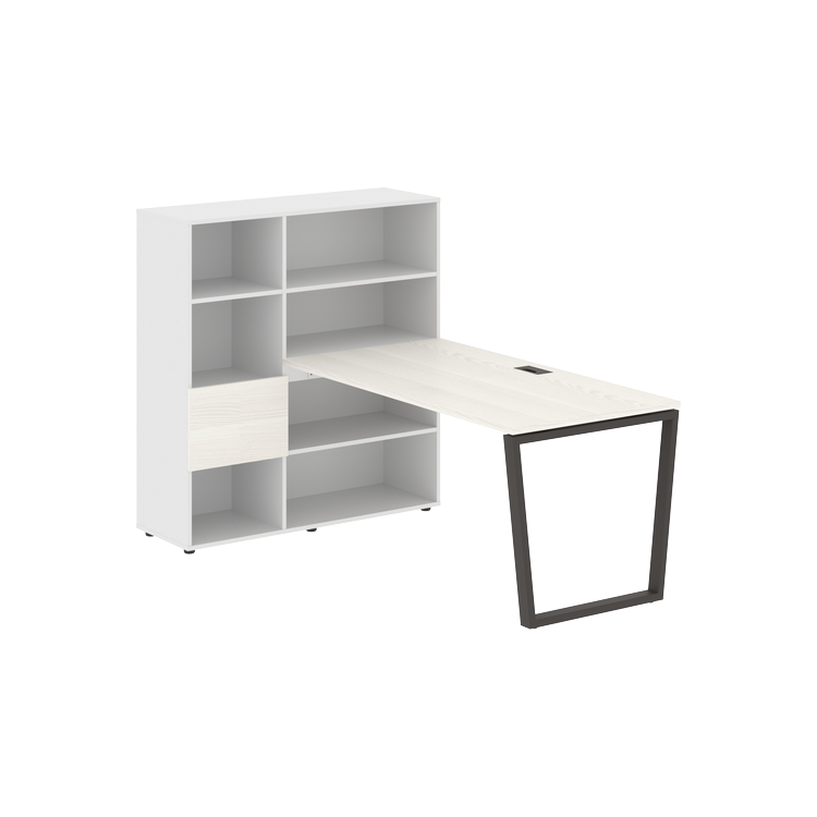 Столешница глубиной 800 мм, комплектуется регулируемой опорой V-образной формы из профиля трубы 60х30, комплектом телескопических траверс и двумя кронштейнами для крепления к стеллажу.