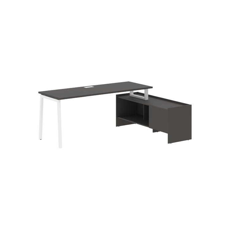 Столешница глубиной 670мм из ЛДСП т.25 мм с кромками ПВХ по периметру т.2 мм. Комплектуется металлическим кабель-каналом габаритом 160х80х25 мм.
