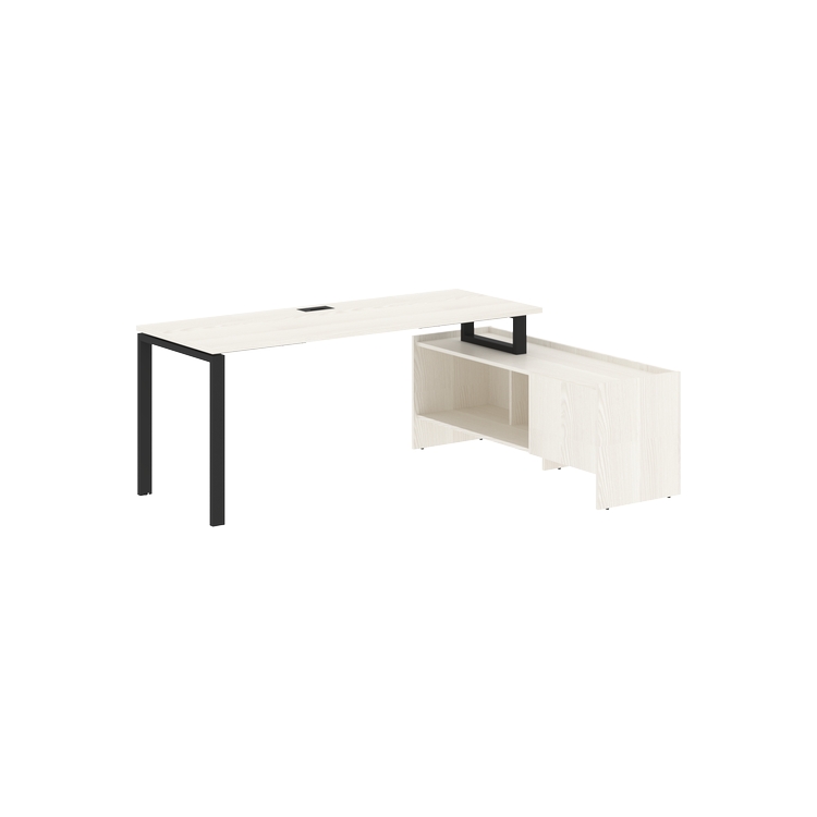 Столешница глубиной 670 мм из ЛДСП т.25 мм с кромками ПВХ по периметру т.2 мм. Комплектуется металлическим кабель-каналом габаритом 160х80х25 мм.