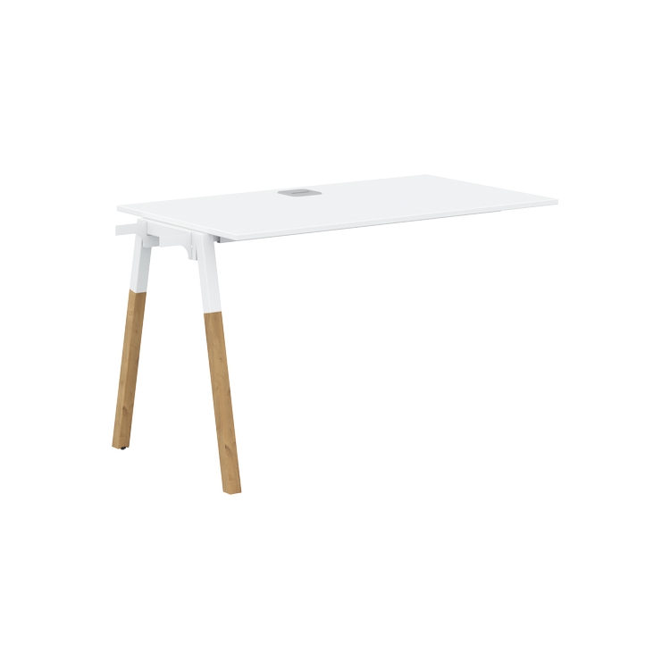 Столешница ЛДСП т.18мм. c кромкой ABS т.2.мм, комплектуется квадратной заглушкой кабель-канала по центру, 2-мя траверсами и промежуточной комбинированной опорой А-образной формы, верхняя часть из профиля трубы 40х40мм и нижняя часть из материала – бук; отделка – масло-воск.