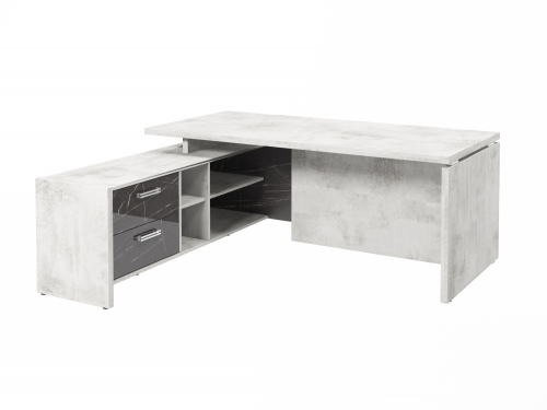 Стол с опорной тумбой FI-119L.GG (L) Хромикс белый/Камень Пьетра Гриджиа черный